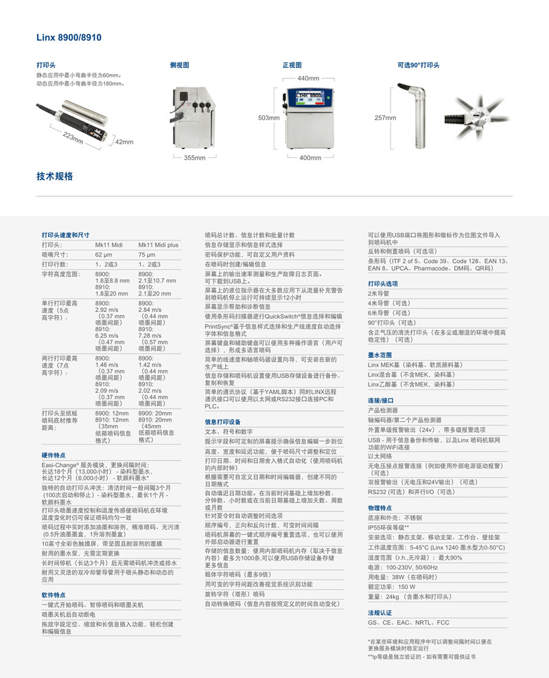 具有3行噴碼和條碼噴碼能力的靈活碼機 用于快速、簡單噴碼設置的大型彩色觸摸屏 維護間隔期長達18個月內的簡單自檢修 快速更換液體盒 無縫鋼附件等級為IP55 實時產量測量和生產線停工日志使您的生產線效率大化