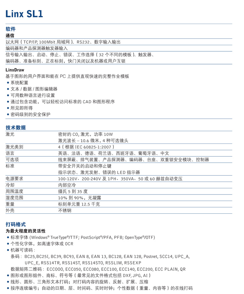 Linx SL1是一款具有成本效益的緊湊型打碼機(jī),可以很好的集成到空間受限的生產(chǎn)環(huán)境中。 價(jià)格實(shí)惠的的無需耗材的激光打碼 具有更強(qiáng)的可靠性和更長(zhǎng)的使用壽命 將文本、商標(biāo)和機(jī)器可讀碼混合在一個(gè)單獨(dú)的消息中 您的包裝設(shè)計(jì)可使用更多字體 牢固的不銹鋼外殼 可在緊密的生產(chǎn)線之間輕松安裝