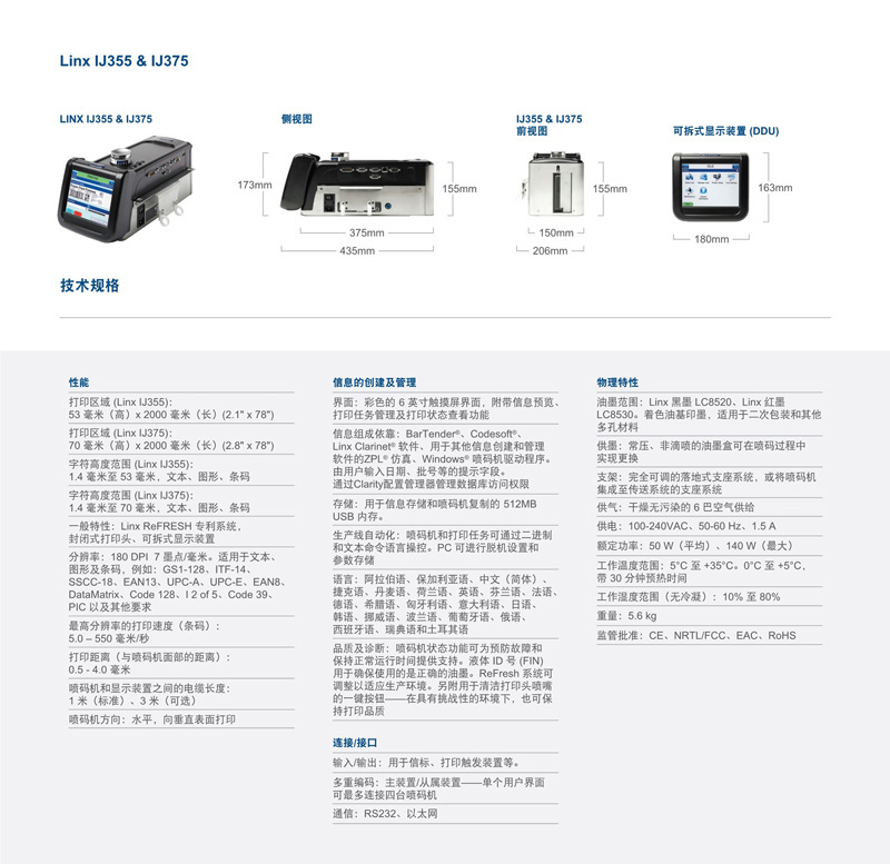Linx IJ355 及 IJ375 高解析大字符噴碼機(jī)為您提供高效的紙箱噴碼方式。打印品質(zhì)上乘且停機(jī)時(shí)間非常短,可打印高分辨率的條碼、圖案和文本。替換傳統(tǒng)的印字機(jī),使客戶(hù)擺脫漫長(zhǎng)的預(yù)熱時(shí)間和條碼脫落的窘狀。